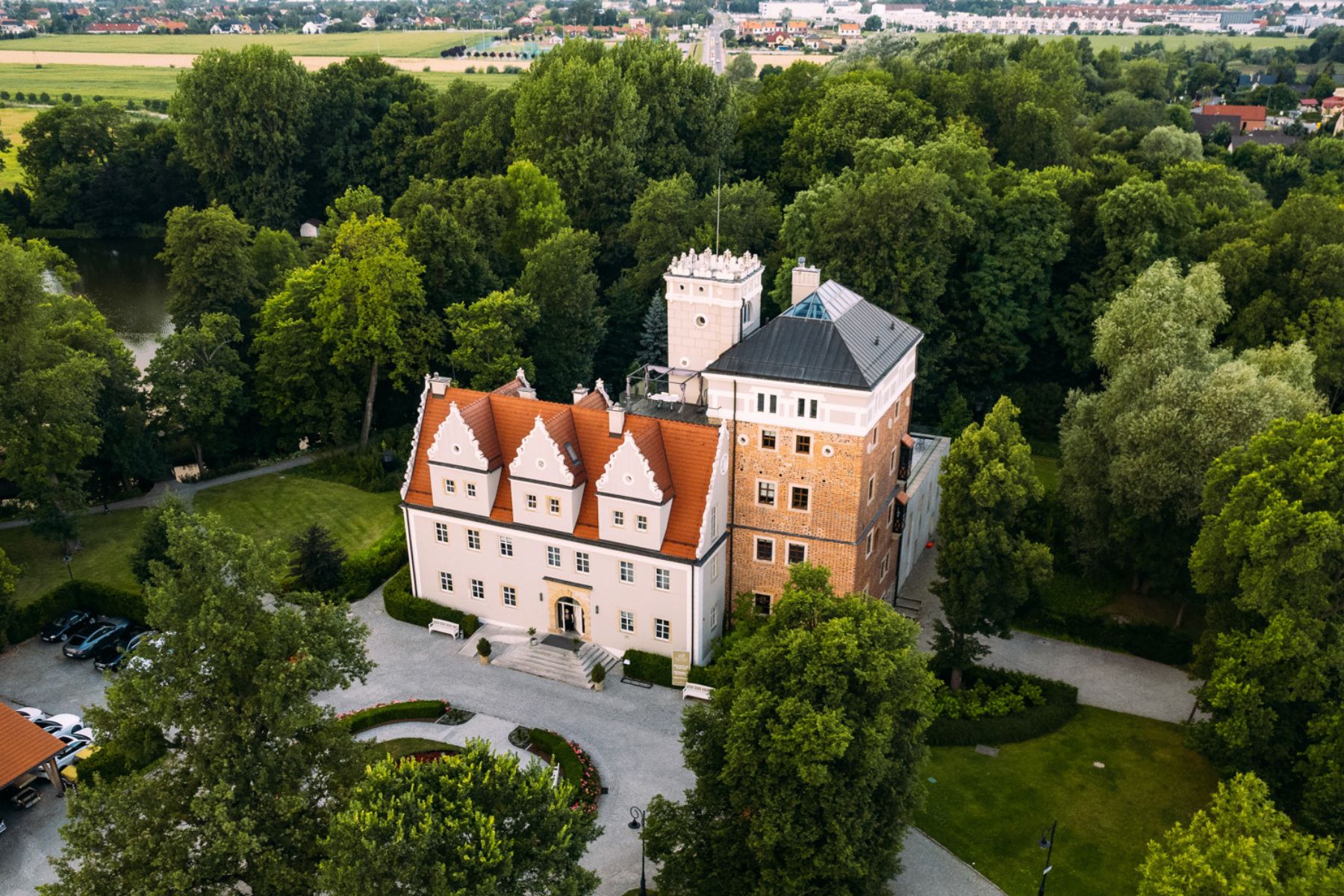 Zamek Topacz Resort & Art Spa is a high-quality hotel complex located in Ślęza, approximately 20 minutes from the centre of Wrocław. The property is set in a restored castle and several historic buildings surrounded by a 50-hectare park with a private pond.